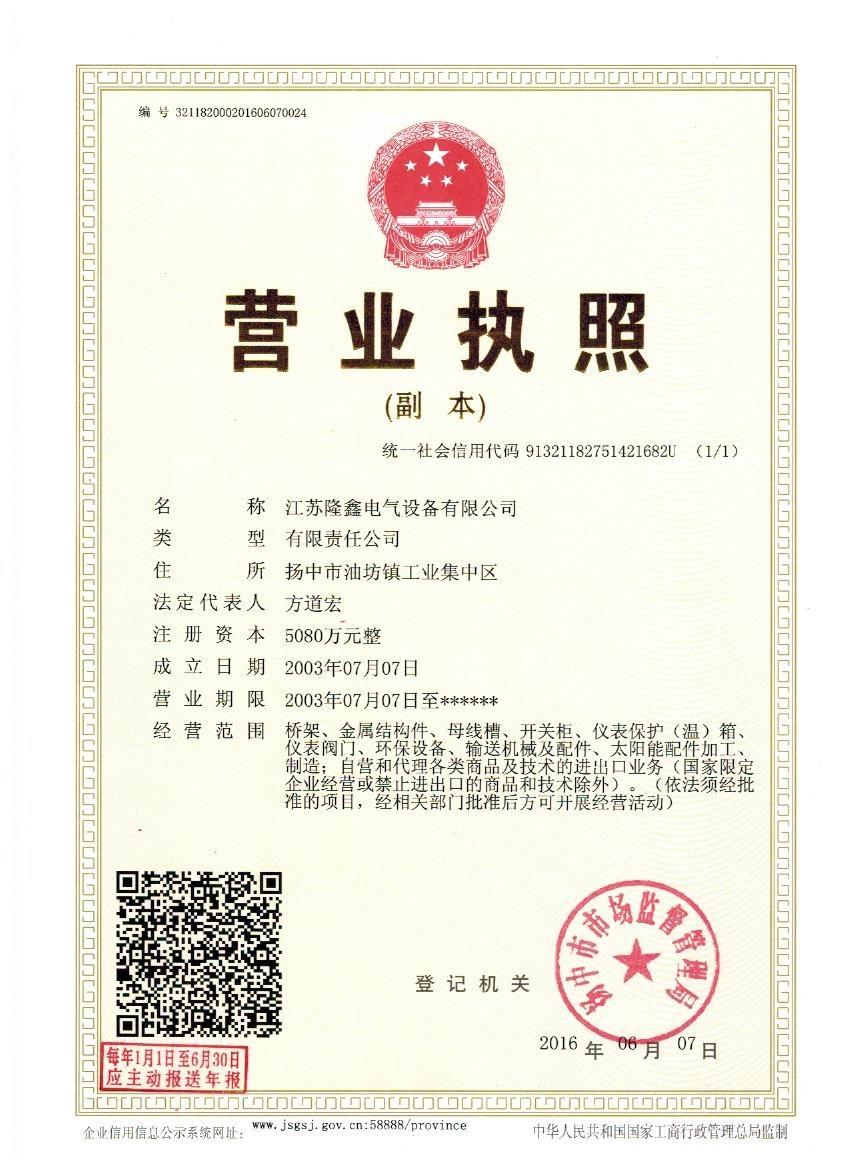 江蘇隆鑫電氣設(shè)備有限公司(原揚(yáng)中市隆鑫電器設(shè)備有限公司)位于風(fēng)景秀麗的江南古城 ---- 鎮(zhèn)江東部揚(yáng)子江畔,水陸交通便利。 本公司是中石化網(wǎng)絡(luò)成員企業(yè),是揚(yáng)中橋架企業(yè),工業(yè)管道閥門、儀表管配件、母線槽、匯線橋架、玻璃鋼制品的專業(yè)生產(chǎn)廠家。 我公司一貫以經(jīng)營以管理為保證、以科技進(jìn)步為動力,使產(chǎn)品的市場占有率不斷提高,公司正持續(xù)、穩(wěn)步、健康地向前發(fā)展,秉循“創(chuàng)造完美、服務(wù)用戶、奉獻(xiàn)社會”的經(jīng)營觀念,本公司生產(chǎn)的儀表管件及閥門系列產(chǎn)品、母線槽、電纜橋架幾乎覆蓋全國31個省、市、自治區(qū)的化工、冶金、交通、輕...